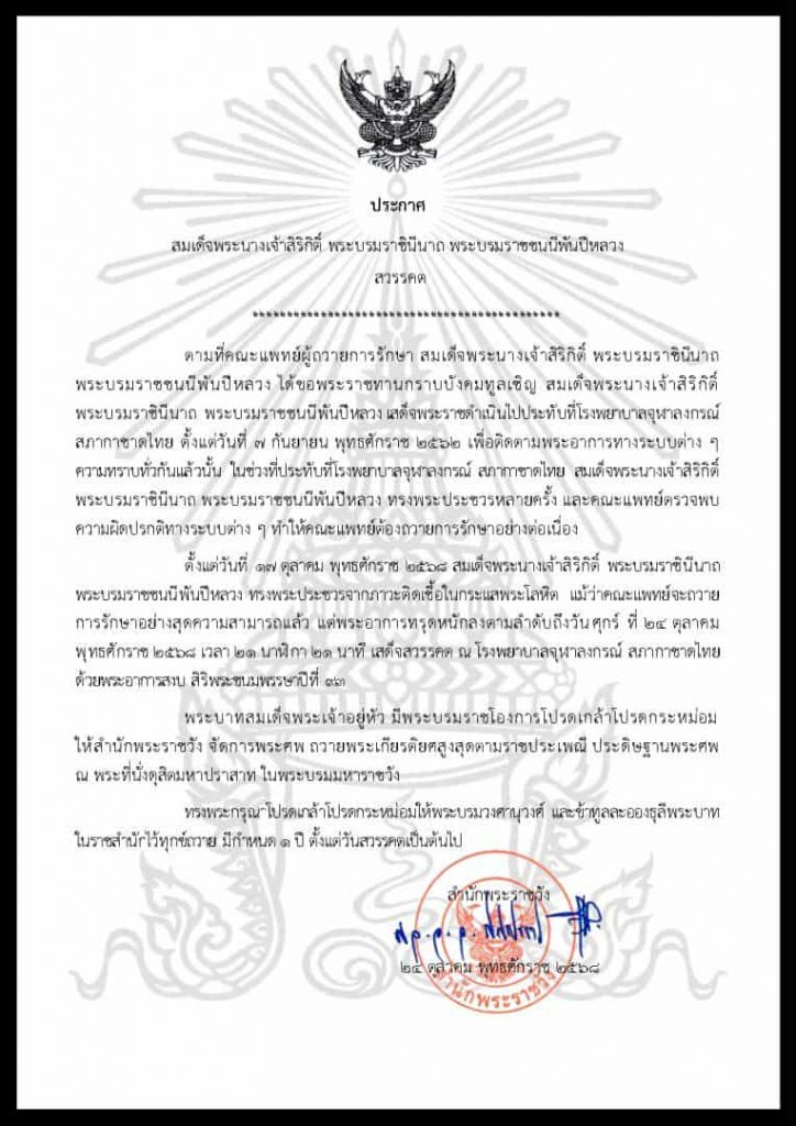 ทั่วไป, ประชาสัมพันธ์ และข่าวสาร สมเด็จพระนางเจ้าสิริกิติ์ พระบรมราชินีนาถ พระบรมราชชนนีพันปีหลวงสวรรคตธ 25 ตุลาคม 2025 / 0 ความเห็น สมเด็จพระนางเจ้าสิริกิติ์ พระบรมราชินีนาถ พระบรมราชชนนีพันปีหลวงสวรรคตธ สถิตในดวงใจไทยนิรันดร์24 ตุลาคม 2568 เมื่อเวลา 21.21 น.