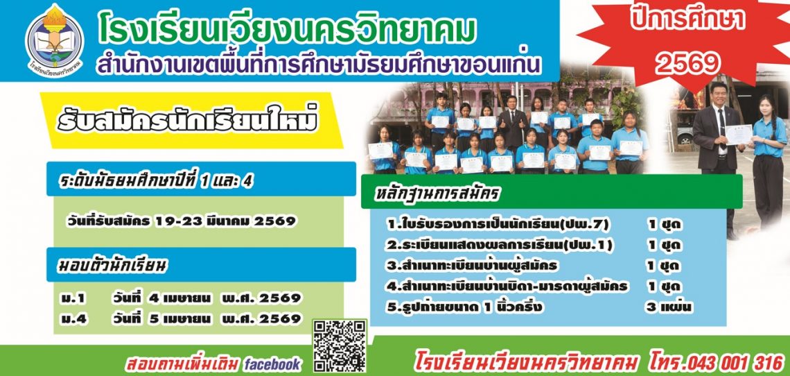 āđ€āļ›āļīāļ”āļĢāļąāļšāļŠāļĄāļąāļ„āļĢāļ™āļąāļāđ€āļĢāļĩāļĒāļ™āđƒāļŦāļĄāđˆ āļ›āļĩāļāļēāļĢāļĻāļķāļāļĐāļē 2569 (āļĄ.1 āđāļĨāļ° āļĄ.4) 📍 āļŠāļąāļ‡āļāļąāļ”āļŠāļģāļ™āļąāļāļ‡āļēāļ™āđ€āļ‚āļ•āļžāļ·āđ‰āļ™āļ—āļĩāđˆāļāļēāļĢāļĻāļķāļāļĐāļēāļĄāļąāļ˜āļĒāļĄāļĻāļķāļāļĐāļēāļ‚āļ­āļ™āđāļāđˆāļ™